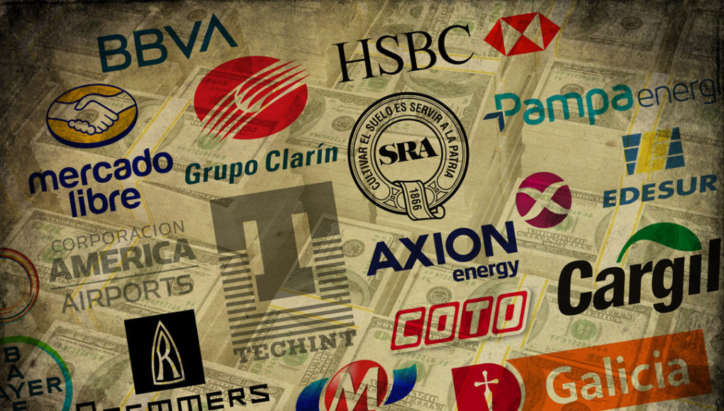 Se trata de propietarios de grandes corporaciones, bancos, grandes compañías de seguros, laboratorios, cadenas de supermercados y empresas de suministro eléctrico cuyos responsables tienen nombre y apellido: Marcos Galperín de Mercado Libre; Federico Braun del Banco Galicia; Alfredo Coto de la cadena de supermercados homónima; el inefable CEO del Grupo Clarín, Héctor Magnetto; la propia familia Macri; Paolo Rocca, de Techint; Alejandro Bulgheroni de Axion Energy; Pérez Companc de Molinos Río de la Plata; Eduardo Eurnekian de Corporación América; Alberto Roemmers, del laboratorio homónimo, entre otros.