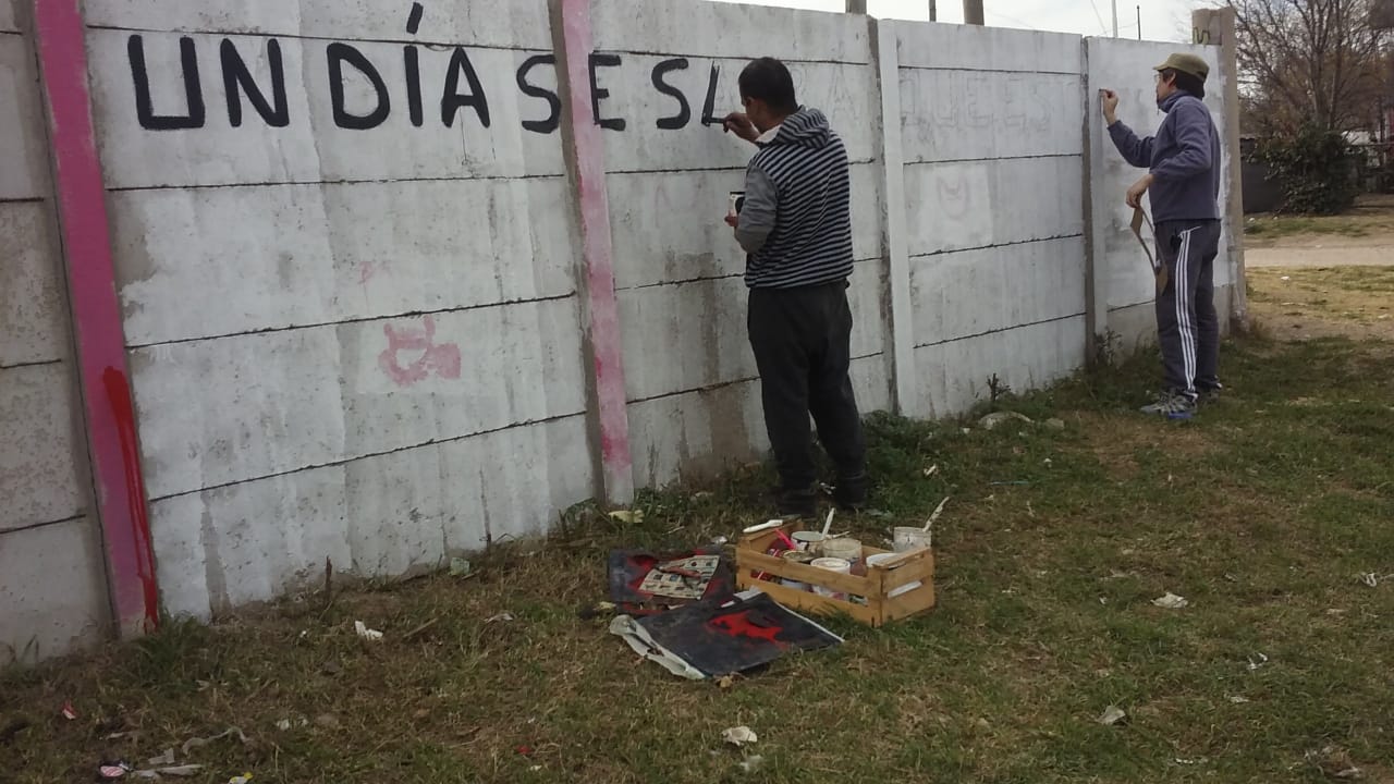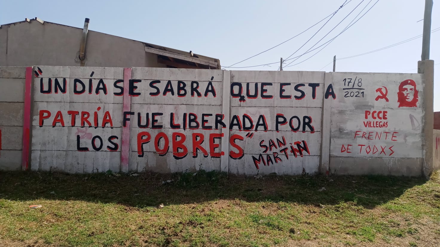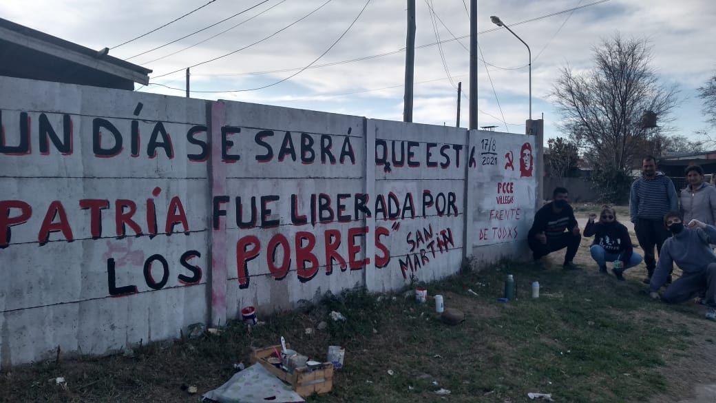 Con lxs camaradas  realizamos un mural en conmemoración del  Paso a la inmortalidad del General José de San Martín, en el Barrio La Trocha.